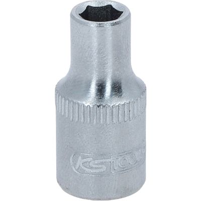 Nasadka szesciokatna, 5mm, 1/4"•6-kątny•profil FlankTraction•zgodny z DIN 3124 / ISO 2725•wewnętrzna nakładka czterokątna zgodna z DIN 3120 / ISO1174 z blokadą kulkową•do obsługi ręcznej•mat satynowany•chrom-wanad