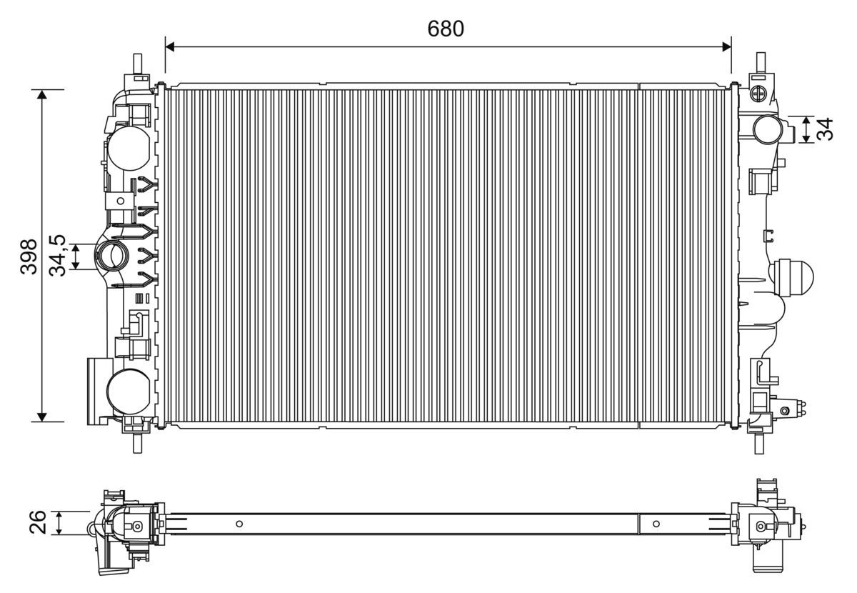| Opis | chłodnica cieczy680 x 388 x 26 / CRUZE 2.0 VCDI 2009 ->, ORLANDO 2.0 VCDI 2011 -> ATM/MTM |