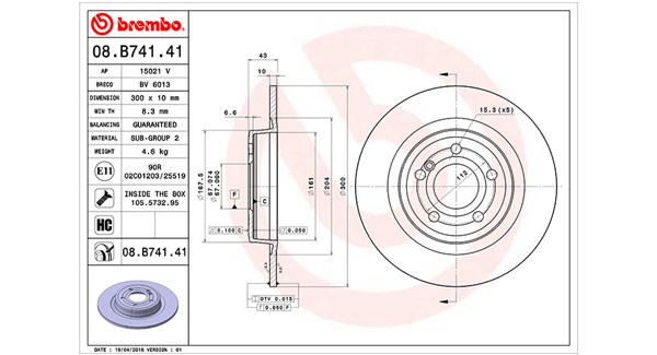 | Oznaczenie kontrolne | E1 90R-02 C0190/0741 |