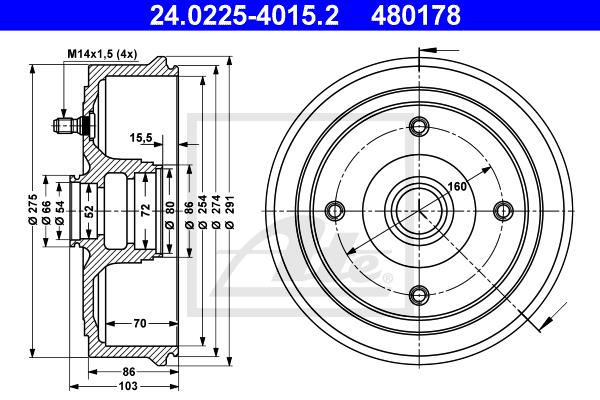 | Całkowita wysokość bębna hamulca [mm] | 103 |